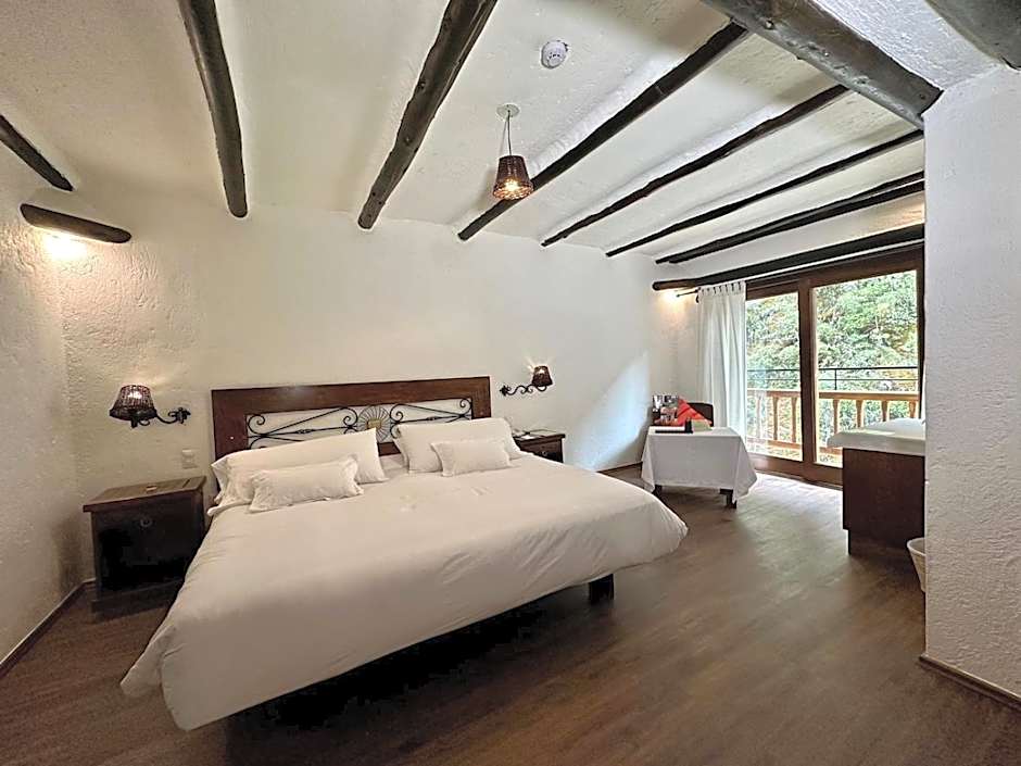 This double room's special features are the hot tub and the fireplace. Providing free toiletries, this double room includes a private bathroom with a bath, a shower and a hairdryer. The spacious double room provides a tea and coffee maker, a wardrobe, a safe deposit box, a flat-screen TV with cable channels, as well as river views. The unit offers 1 bed.
